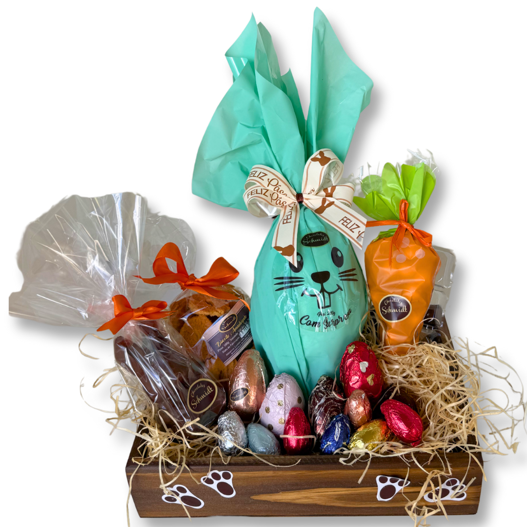 01 Coelho de chocolate ao leite 70 g, na caixinha