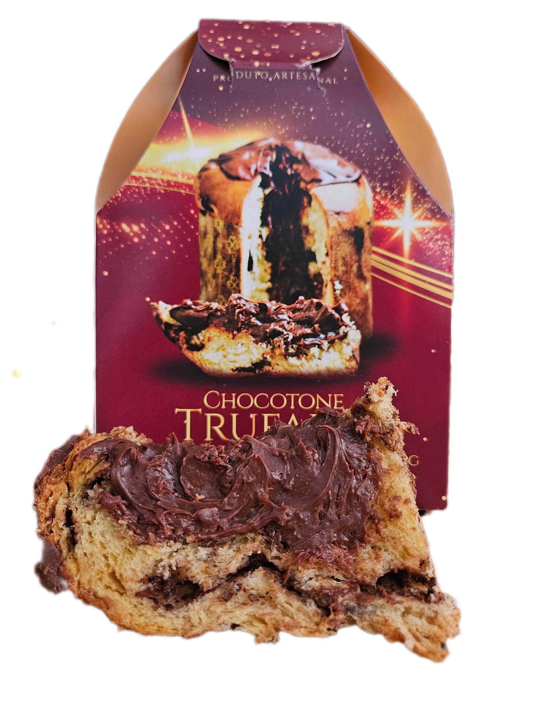 Sucesso em vendas todos os anos, nosso chocotone artesanal trufado é elaborado com autêntica receita italiana de fermentação natural, trufado com ganache belga , recheado com gotas de chocolate , e coberto com uma majestosa camada chocolate ao leite. Impossível resistir!