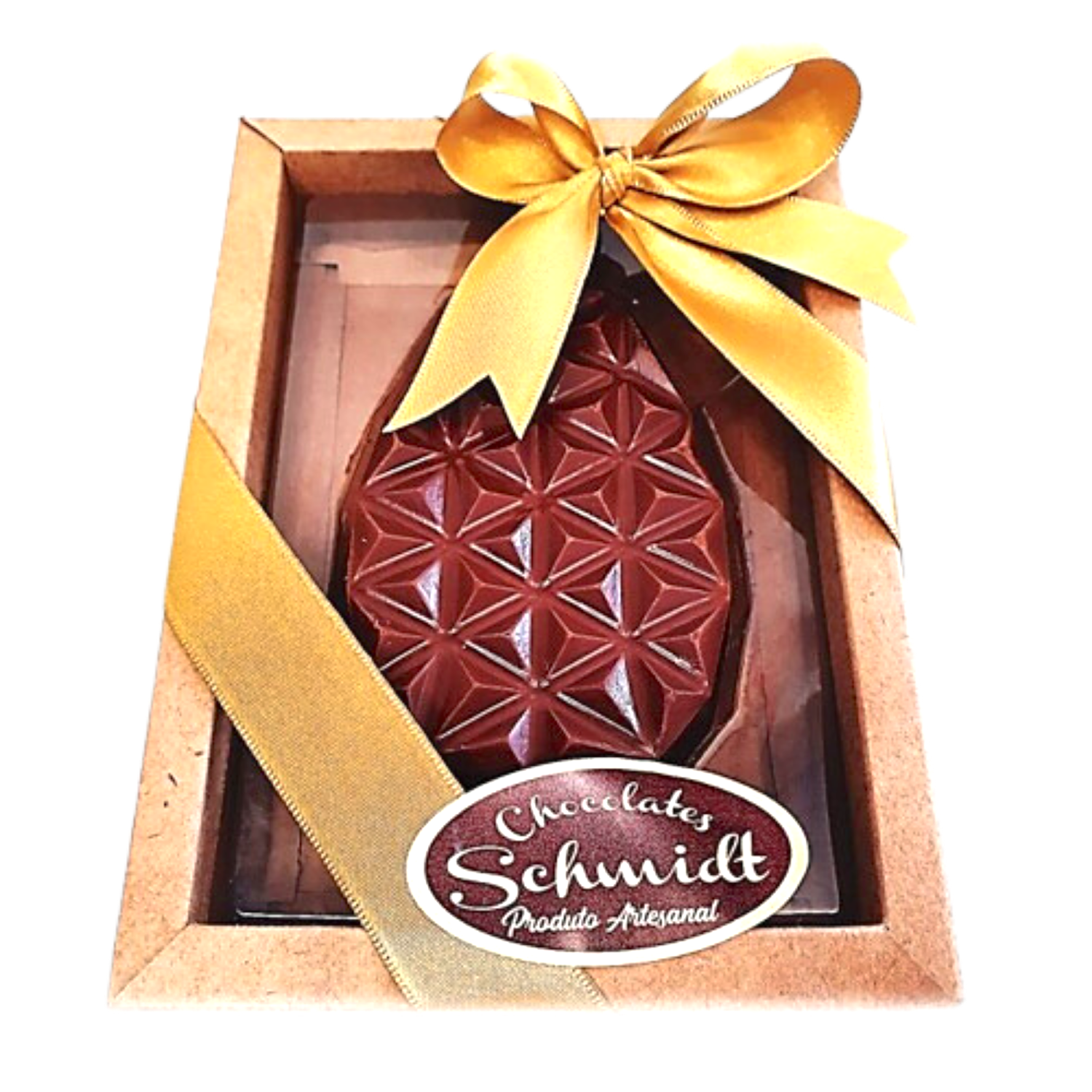 Meio ovo de chocolate ao leite lapidado, recheado com nosso delicioso ganache de chocolate ao leite.